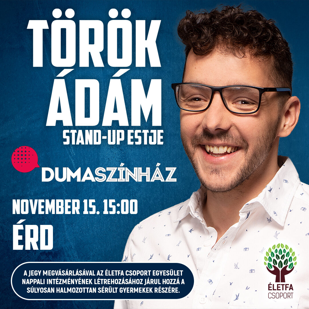 Az Árulókból is jól ismert Török Ádám vár mindenkit november 15-én 15 órakor stand-up előadásával. Minden megvásárolt jeggyel az Életfát támogatjátok és hozzájárultok ahhoz, hogy 15 halmozottan sérült fiatalnak egy szuper napközit hozzunk létre!