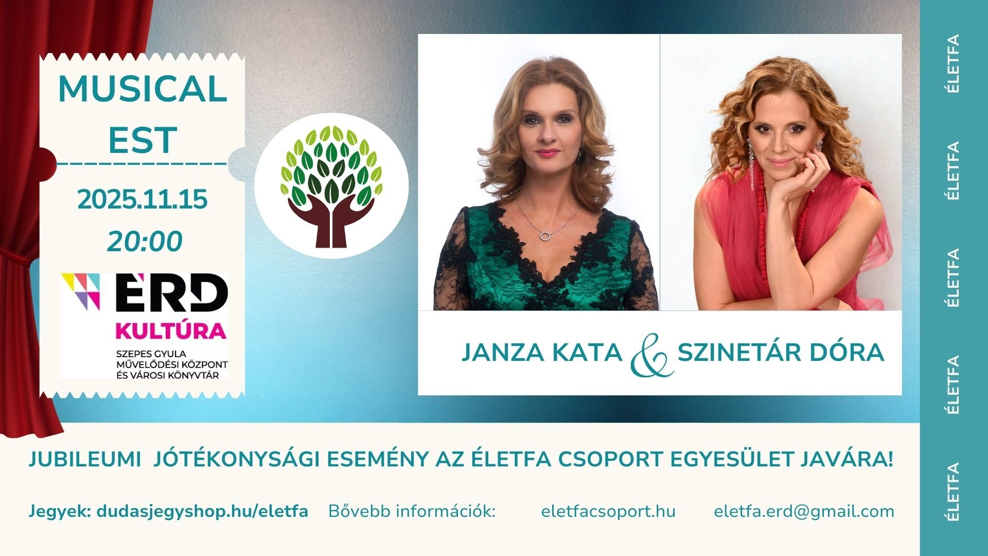 Két kiemelkedő művésznő, Janza Kata és Szinetár Dóra, az operett- és musicalműfaj nagy slágereit hozzák el erre az estére — nemcsak kiemelt dalokkal, de kulisszatitkokkal, személyes történetekkel is készülnek. Egy igazán emberi és felemelő koncertélmény vár rád.